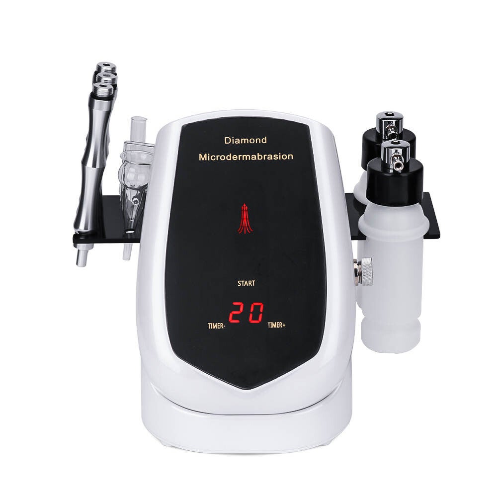 Werkend principe 1. Diamond microdermabrasie: automatische vacuümzuiging en ontgrendeling met 3 identieke bedieningshendels van roestvrij staal en 9 bedieningstips van verschillende maten en vormen voor het verwijderen van mee-eters, rimpels, acne, littekens, enz. Op verschillende gezichts- en lichaamsdelen. 2. Vacuümverwijdering van mee-eters: 3 kleine glazen kopjes van verschillende maten en vormen, speciaal ontworpen voor het verwijderen van mee-eters op de neus in combinatie met instelbare vacuümafzuiging. 3. Spray: 2 spuitflessen uitgerust voor het bevatten van water, toner of andere huidverzorgingsproducten om de opname van voedingsstoffen te verbeteren om de huid te hydrateren, op te helderen en te verjongen. Functies 1. Klein van formaat en licht van gewicht 2. Eenvoudige bediening voor dagelijkse huidverzorging; 3. 3 identieke en vervangbare diamanten handgrepen 4. 9 diamantkoppen in verschillende maten en vormen 5. 2 sproeiers voor hydratatie en verheldering van de huid 6. 3 verschillende kopjes speciaal voor het verwijderen van mee-eters